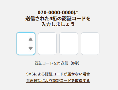 画面下部の「音声通話により認証コードを取得する」をタップし、音声で4桁コードを確認してください。